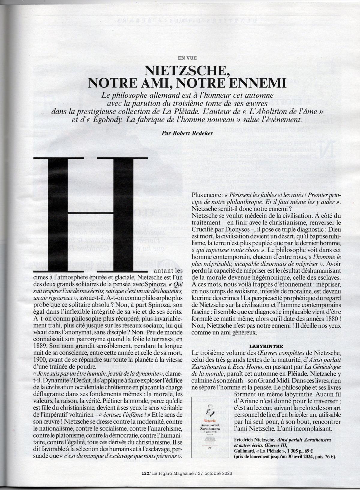 Par Robert Redeker, dans le Figaro Magazine daté du 27 octobre 2023.